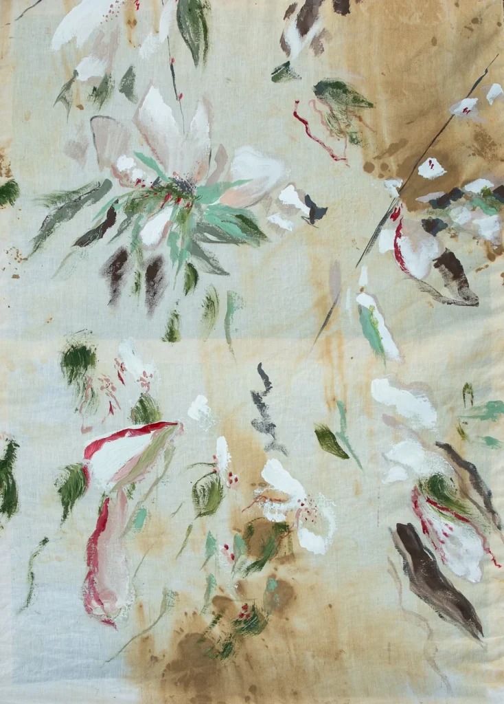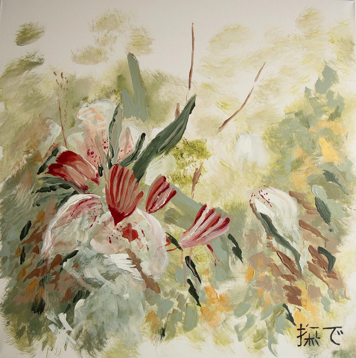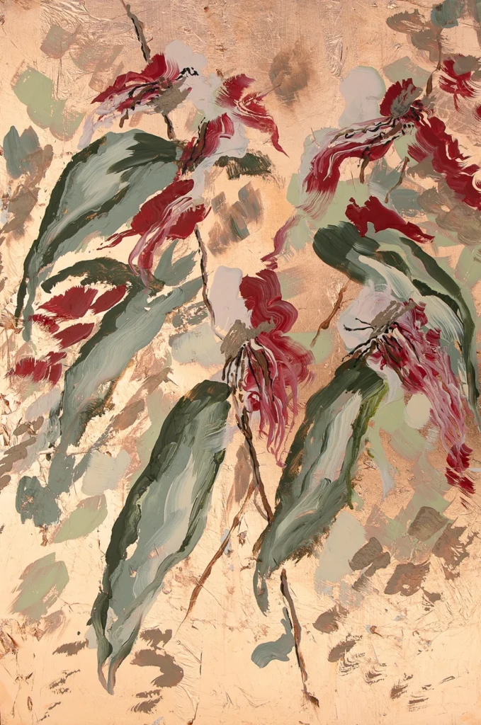 Awakening Stillness captures the moment life stirs gently after a long quiet. Layers of soft greens and golds create an atmosphere of calm renewal, while strokes of red and blush emerge like heartbeats—reminders of vitality returning. This work speaks to the serenity found in healing, where growth unfolds quietly beneath the surface. The composition evokes a meditative stillness that precedes transformation—a breath before movement, a pause before becoming.