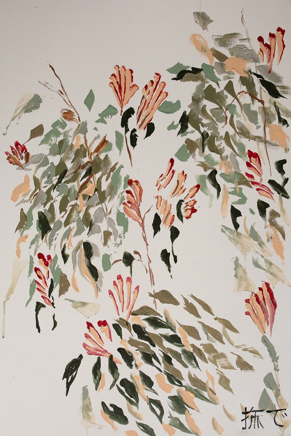 Echoes of Growth captures the rhythm of regeneration—the subtle, persistent motion of life returning in waves. The soft, layered brushstrokes of peach, olive, and red flow like breath across the canvas, evoking both movement and memory. Each bloom reaches outward, reflecting resilience and the quiet strength of nature’s renewal. This piece invites contemplation on the cycles of change—how healing unfolds not as a single act but as a gentle, continuous becoming.